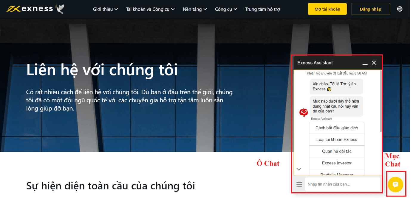 2.1. Trò chuyện trực tuyến tổng đài Exness