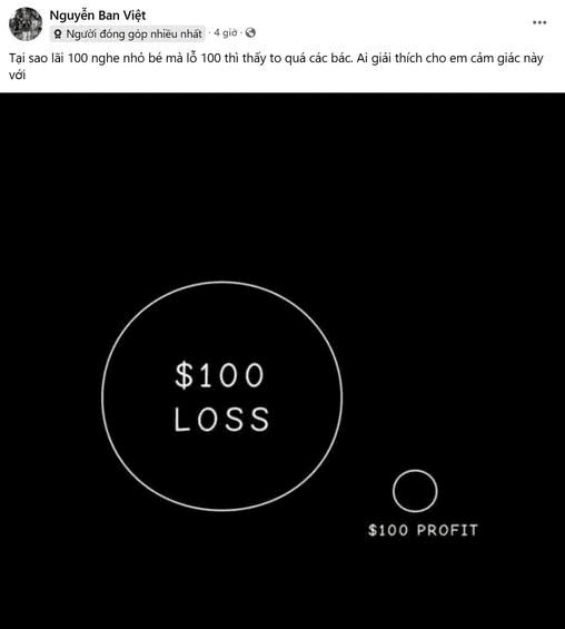 Trên thực tế, đúng là cái nỗi đau của cảm giác mất 100$ nó lớn hơn rất nhiều so với sự sung sướng khi lãi 100$ đấy anh em ạ.